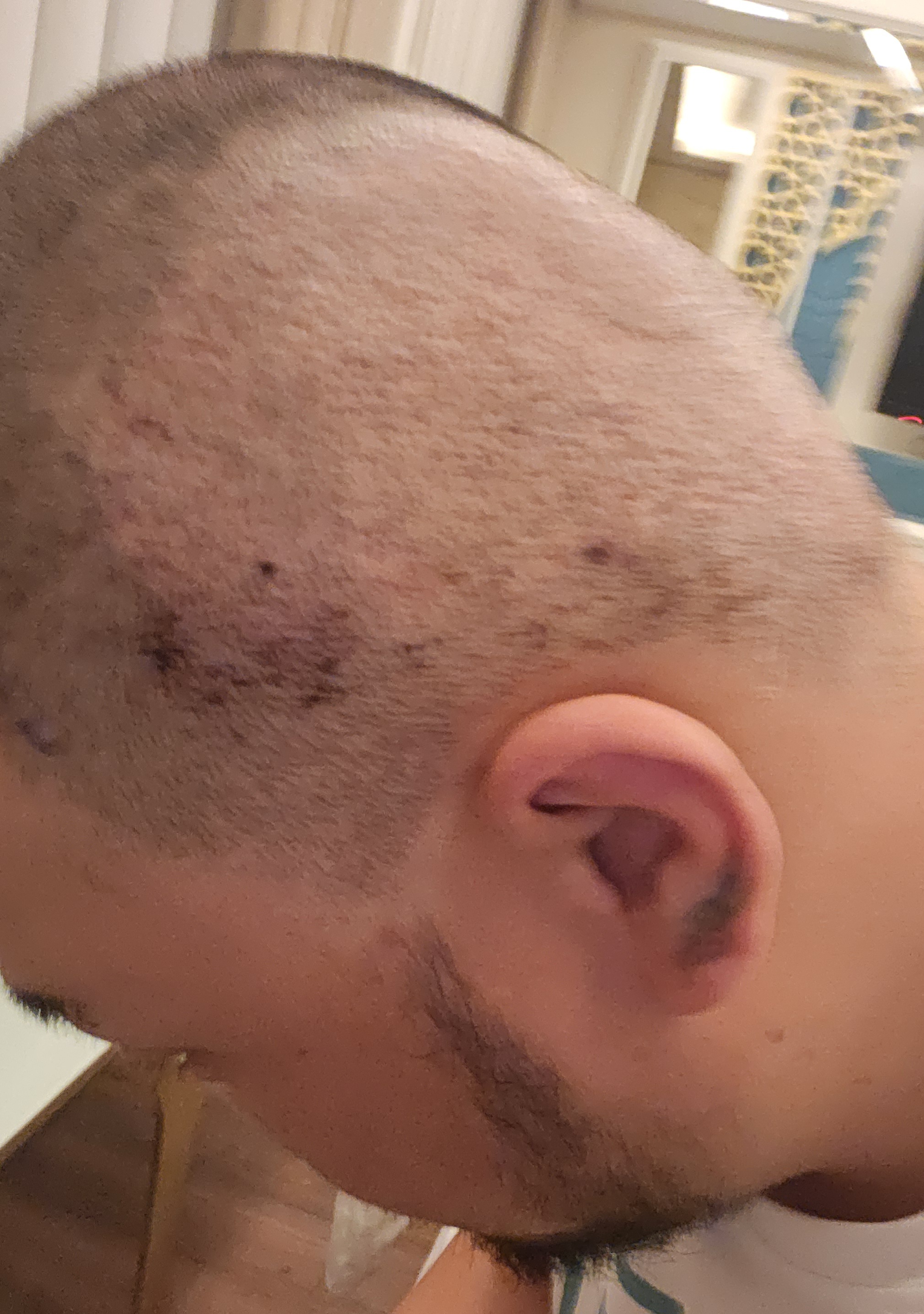 이게 쉐딩 현상인지 속도가 달라서 그런건지 이유는 아직 뚜렷하게 모르는것 같습니다. 그러나 이식한 부위와 기존 머리카락의 길이가 달라서 티가 좀 많이 나는 상태입니다. 특히 머리가 짧다 보니 가까이서 보면 “아, 여기 이식했구나” 싶을 정도로 경계가 눈에 띕니다. 이번 주 내로 의사에게 연락을 해서 이유를 물어보려 해요 이부분은.